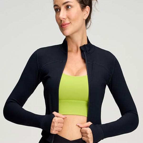 Yoga jacket: Designed with a high neck, cropped length hem, and 4-ways-stretch fabric, the zip up jackets for women dynamically stretch and move with your body.